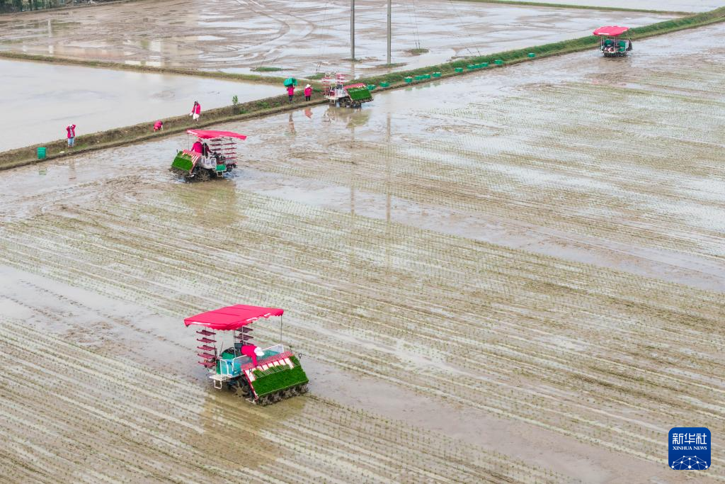 4月17日,湖南省长沙市望城区高塘岭街道湘江村聪慧农场早稻出产已进入环节期,望城区积极鞭策农业机械化、智能化,4月17日,无人驾驶旋耕机取农用无人机共同,打制的“将来稻村·聪慧农场”项目集成智能配备、数字管控、绿色出产等手艺,